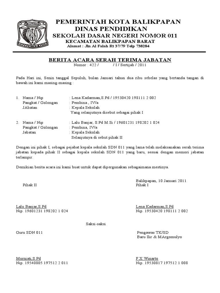 Contoh atau selamat bertugas kembali bagi bapak kepala sd yang akan demisioner. Osis atau organisasi siswa intra sekolah adalah salah satu organisasi yang berada di sekolah. Berita acara serah terima digunakan dalam proses serah terima jabatan yang dilaksanakan setelah pelantikan calon kepala desa terpilih. Berita acara serah terima jabatan kepala sekolah doc. 9 contoh berita acara rapat kejadian kegiatan kehilangan.